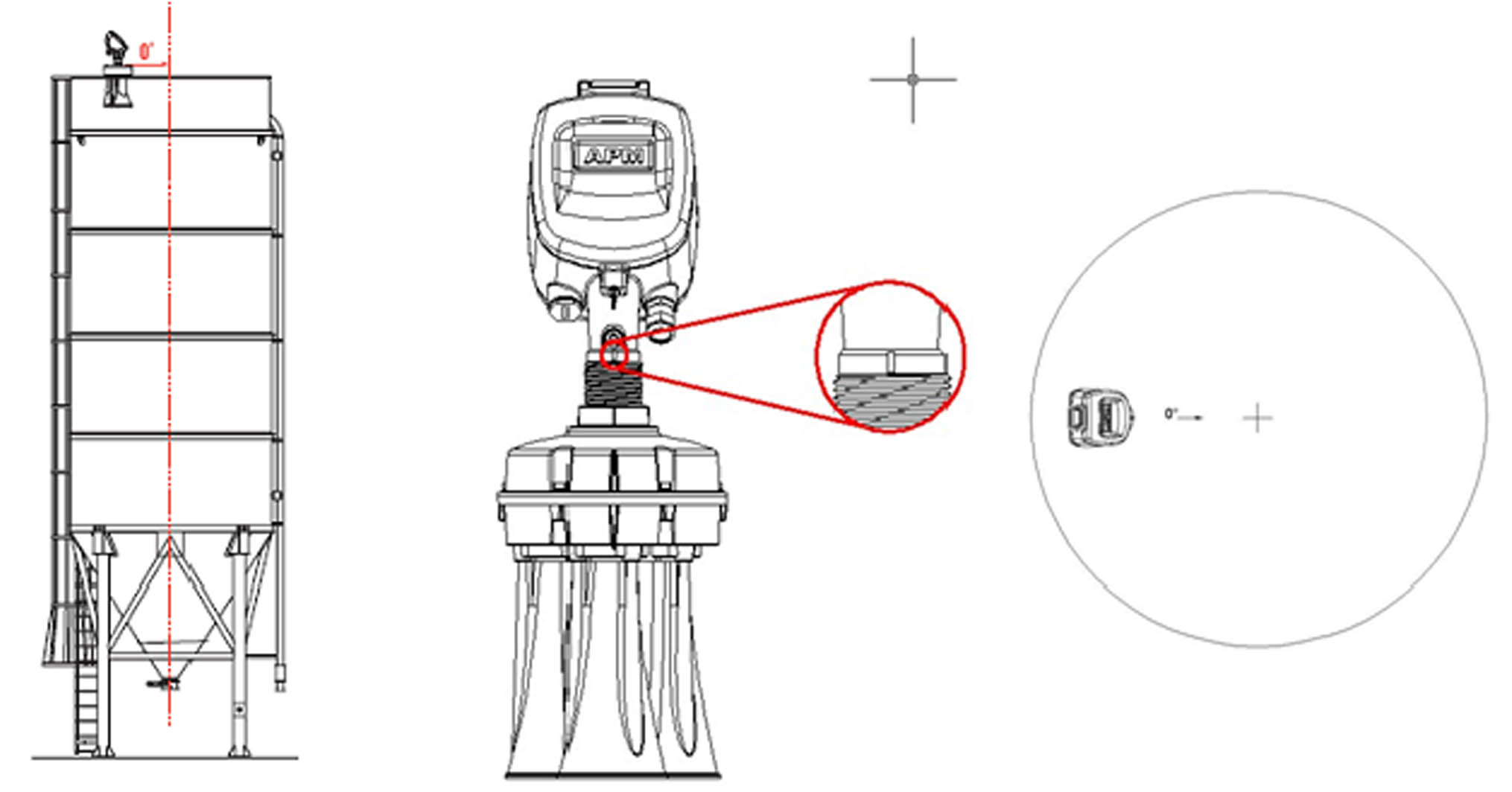 l 0度標(biāo)記需要指向料倉的中心(包括方形倉及開放倉) |